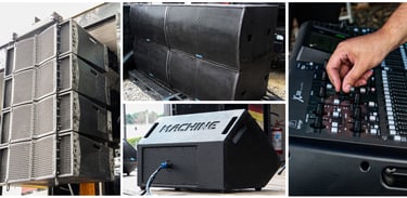 Caixas de som: 2 Line array, 8 subwoofer, 4 retornos