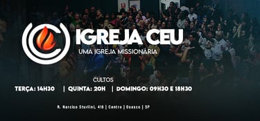 A Igreja CEU é uma comunidade missionária que se inspira nos primeiros discípulos, promovendo o ensino e a pregação de Jesus tanto no templo quanto em residências. Nossas reuniões ocorrem várias vezes por semana, oferecendo momentos de comunhão, aprendizado e celebração da presença de Deus para que possamos alcançar vidas para o Reino de Cristo por meio da dedicação dos vocacionados.