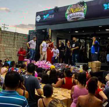 Nossa missão vai além! Promovemos uma significativa festa de Natal para as crianças, oferecendo brinquedos, calçados, alimentos e muito mais.